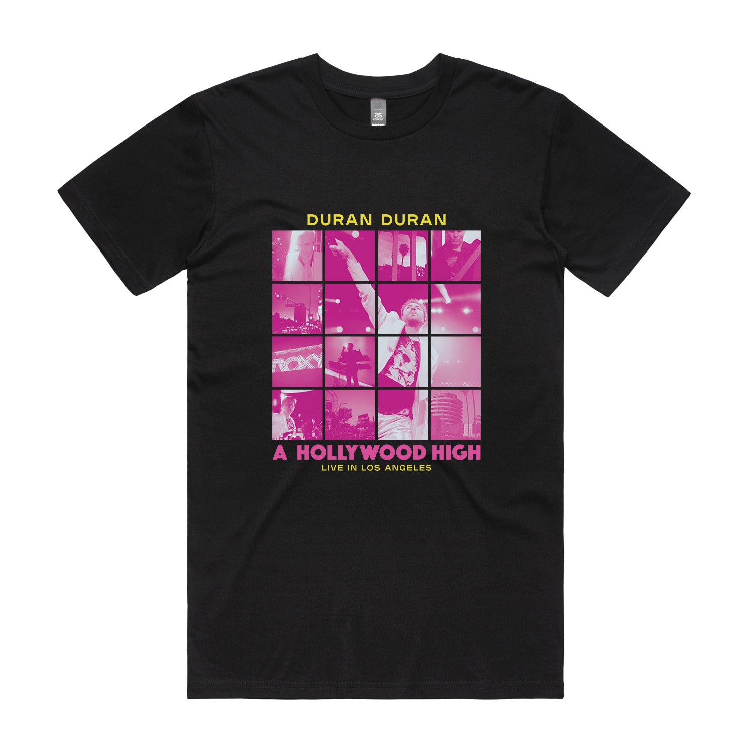 Premium unisex black t-shirt featuring a 'Duran Duran: A Hollywood High' front print.